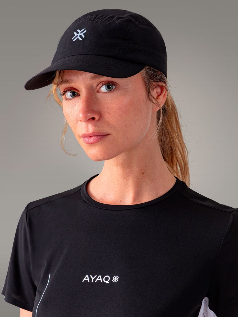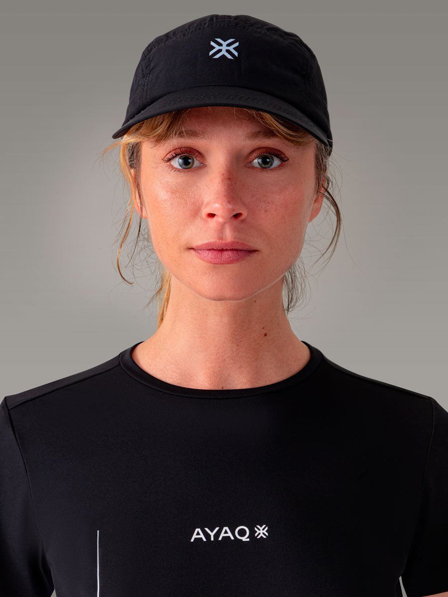 Casquette ultra-légère (53g) et compactable pour trail et running. 100% polyester recyclé, fabriquée en Europe.