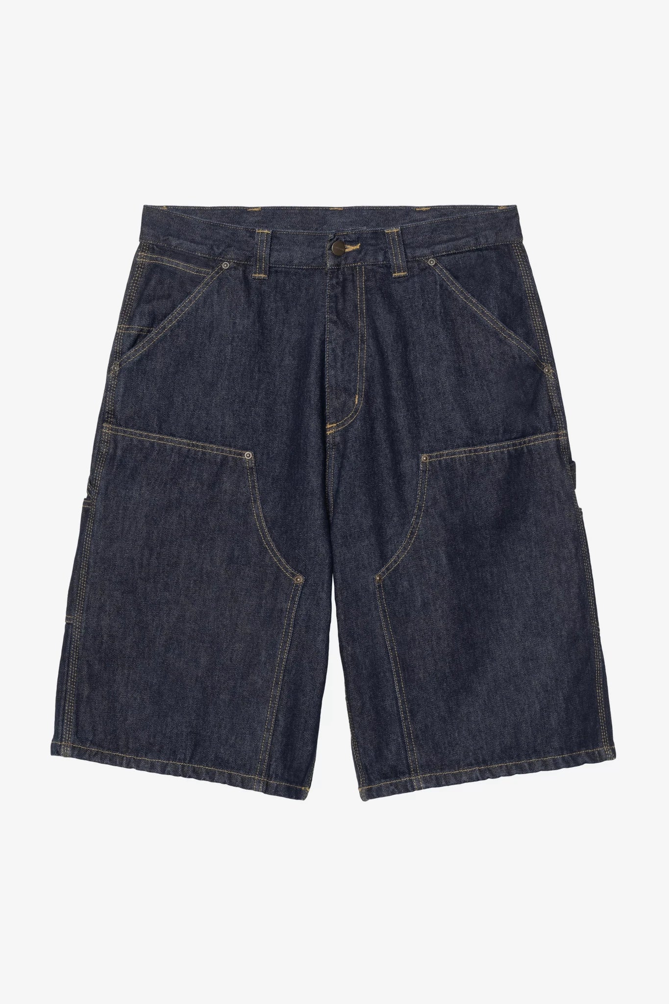Le OG Double Knee Short Blue (Rinsed) incarne l’héritage workwear dans une version estivale robuste. Confectionné en denim de coton épais, il adopte une coupe wide pour une silhouette ample et contemporaine. Sa double épaisseur aux genoux, associée aux rivets métalliques et aux points bartacks aux zones de tension, garantit une durabilité optimale. Les poches à outils, la boucle porte-marteau et le Square Label cousu à l’arrière complètent ce modèle utilitaire emblématique.