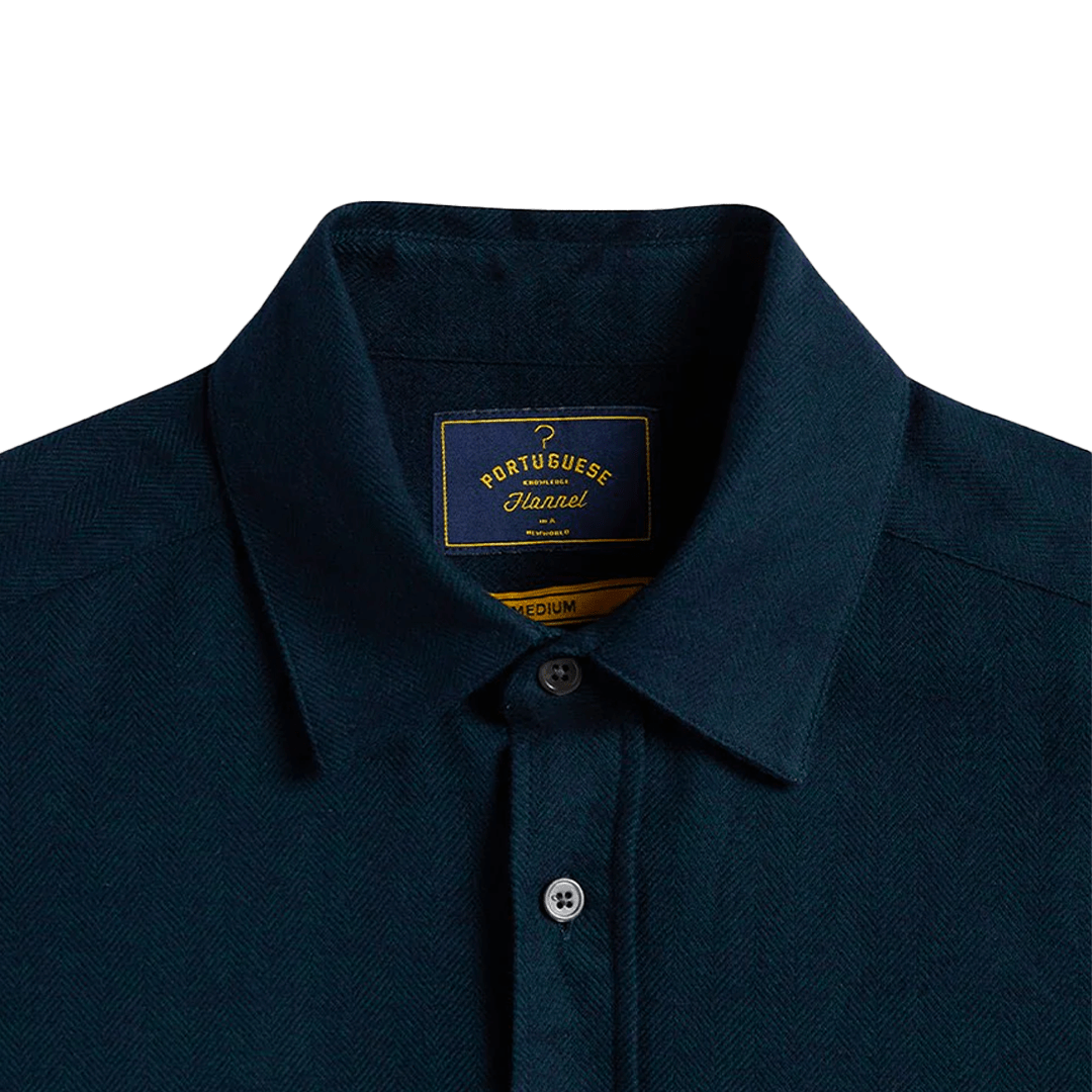 La chemise Espiga de Portuguese Flannel séduit par son motif chevrons subtils et sa teinte verte profonde, idéale pour une allure élégante et contemporaine. Confectionnée au Portugal, elle reflète un savoir-faire artisanal alliant confort et sophistication. Sa texture raffinée et sa coupe intemporelle en font une pièce maîtresse du vestiaire masculin. Une chemise au charme discret mais affirmé.