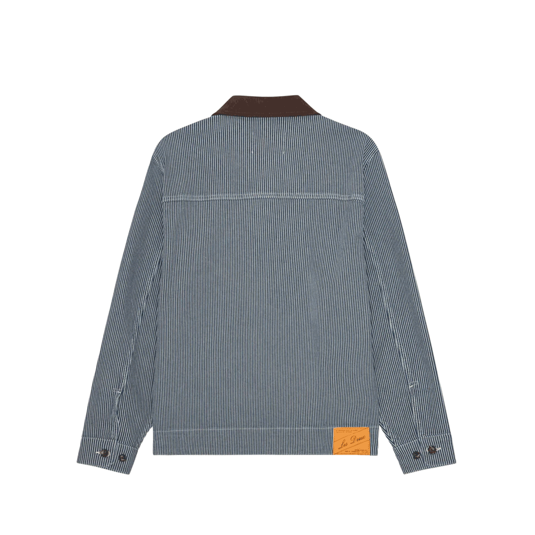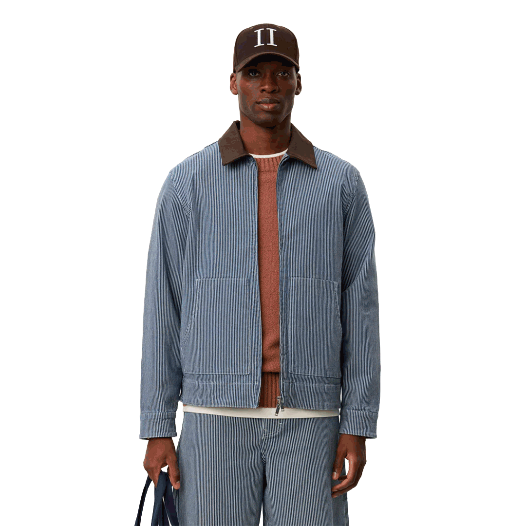 La Robert Striped Jacket – Dark Navy revisite le vestiaire workwear dans une version contemporaine et structurée. Confectionnée en denim rayé légèrement extensible, cette veste courte à coupe regular combine confort et fonctionnalité. Son col en sergé contrasté, ses poches kangourou et sa fermeture zippée bidirectionnelle en font une pièce pensée pour la superposition, au style affirmé mais épuré. Un essentiel du quotidien, entre héritage utilitaire et modernité.