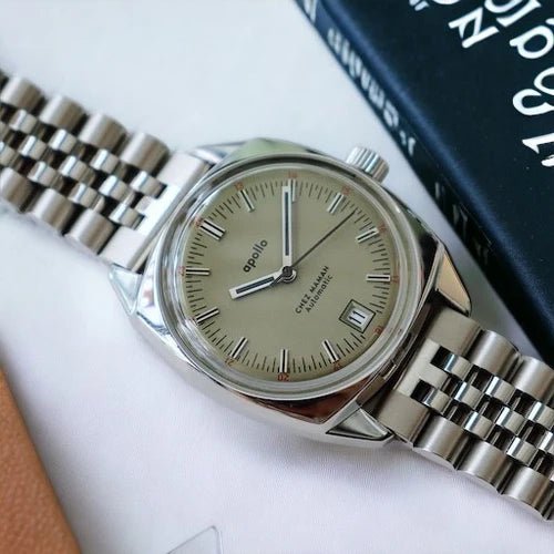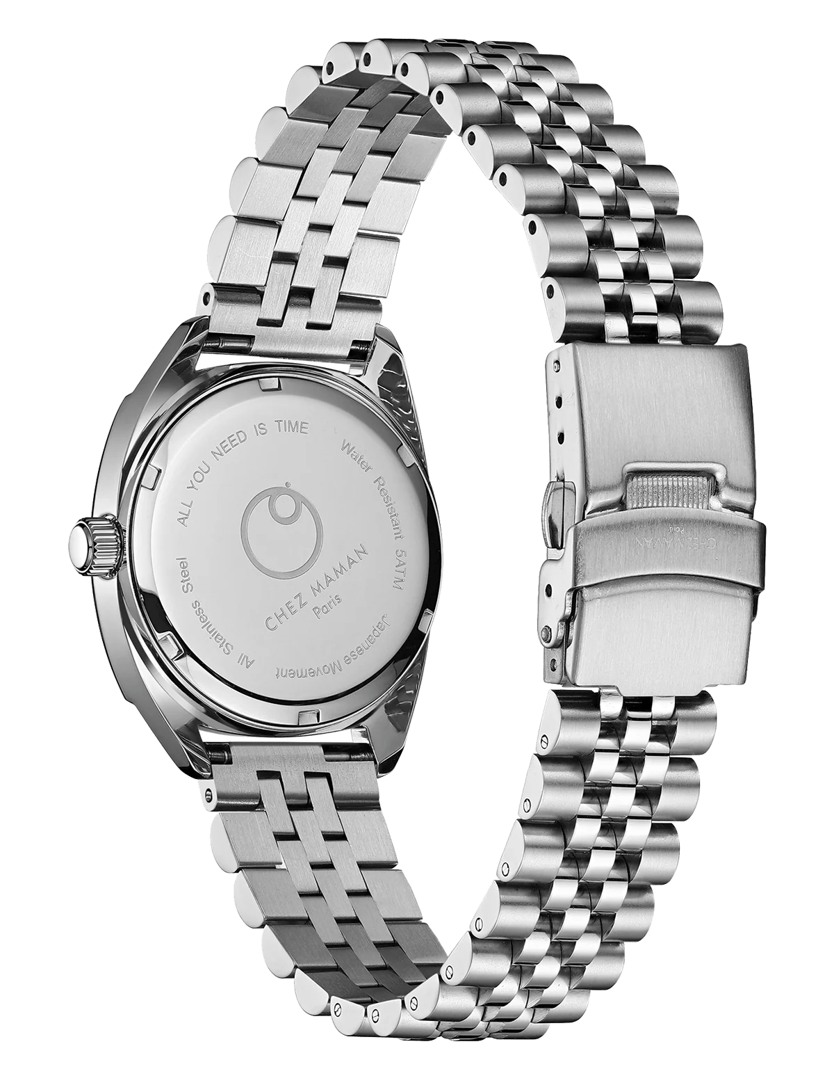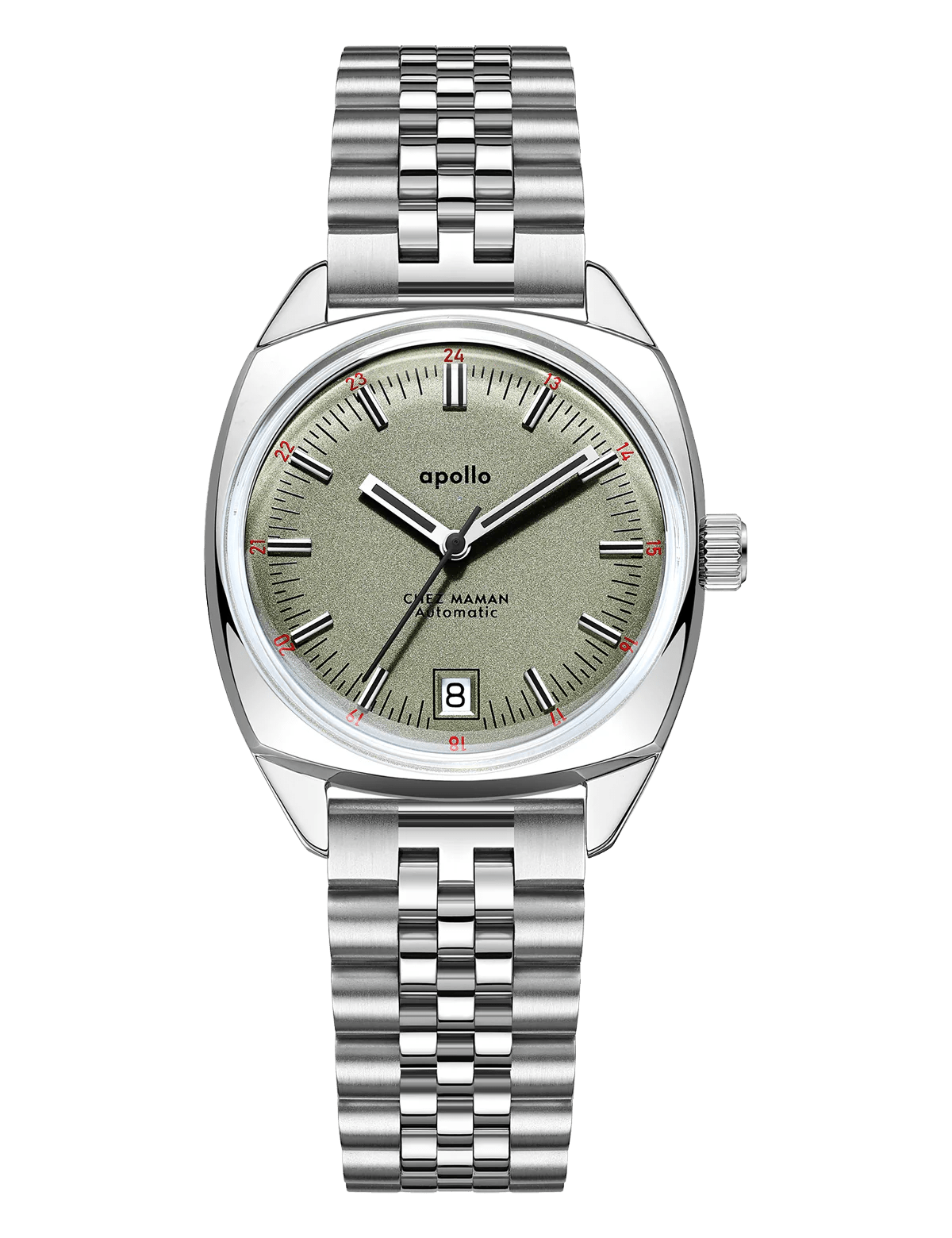 La CHEZ MAMAN Apollo Khaki Sand incarne l’esprit des montres vintage tropicales, avec un boîtier compact de 35 mm inspiré des années 50-60. Son cadran khaki patiné, associé à un verre bombé rétro, évoque le charme des plages ensoleillées. Le mouvement automatique Citizen Miyota 8215, doté de 40 h de réserve de marche, assure fiabilité et élégance sans compromis. Étanche à 5 ATM, elle s’adapte à toutes vos aventures, de la ville aux escapades.