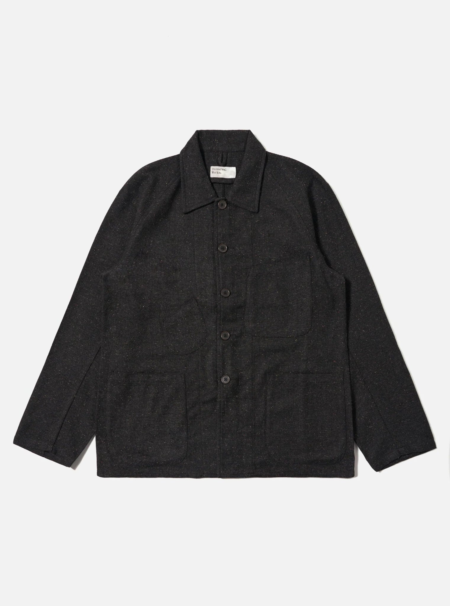 Pensée pour affronter l’hiver avec élégance rustique, cette veste chore se distingue par sa coupe relaxed et ses manches raglan, qui apportent une épaule naturellement souple. Son tissu tweed Salt & Pepper, riche en texture, lui donne un caractère authentique et une présence visuelle forte. Avec ses quatre poches plaquées, dont une poche ticket décalée, elle allie parfaitement style utilitaire et raffinement.