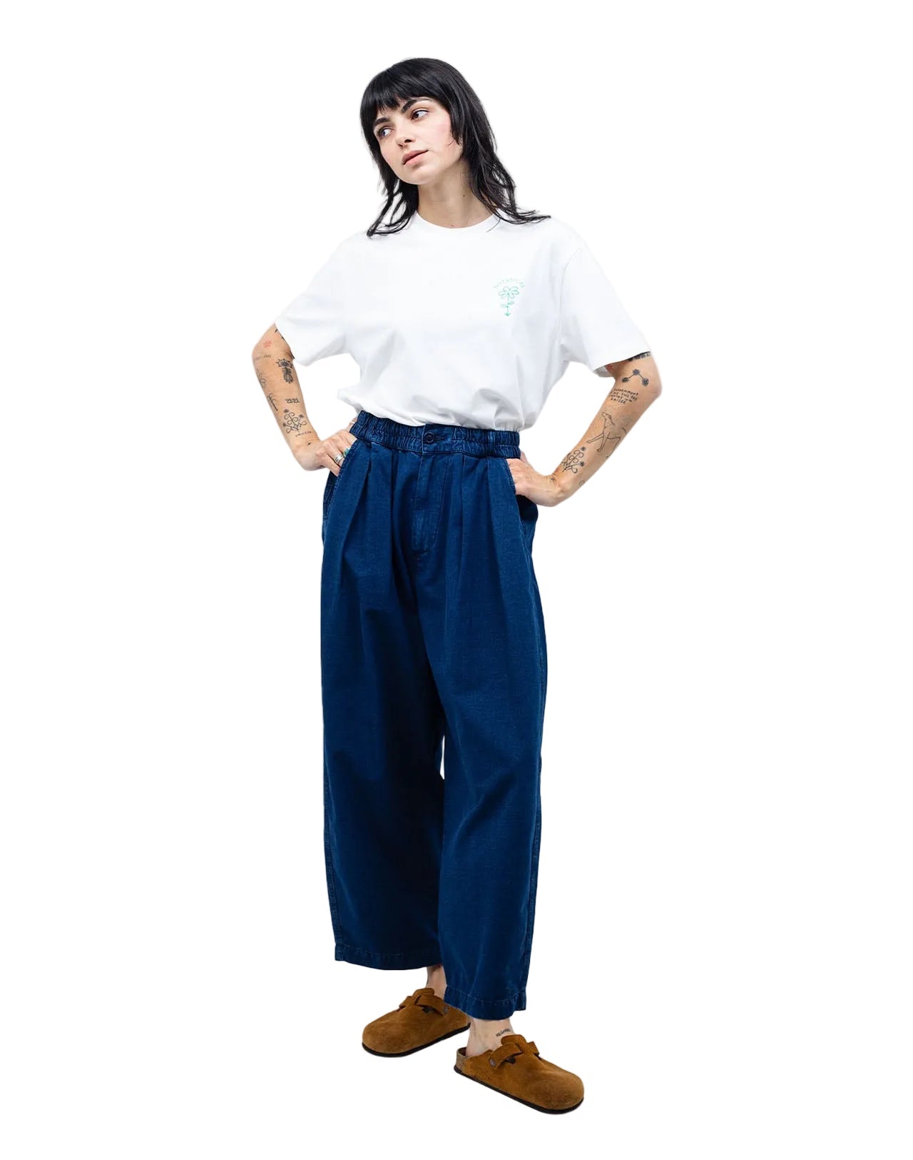 Pantalon Cargeot Olow, sergé coton 300g, coupe ample, zip YKK, corozo. Terre et Denim Bleu.