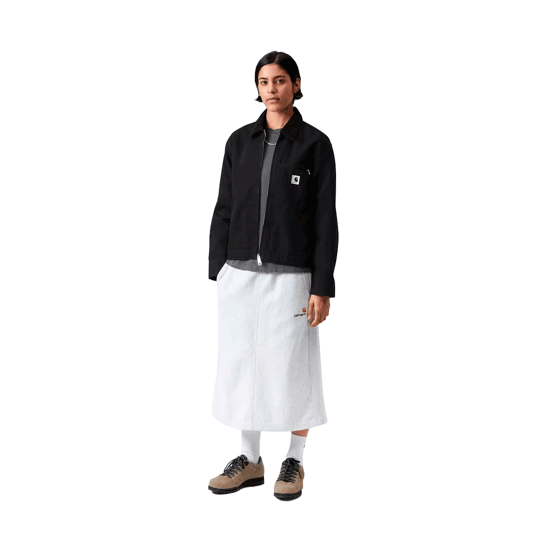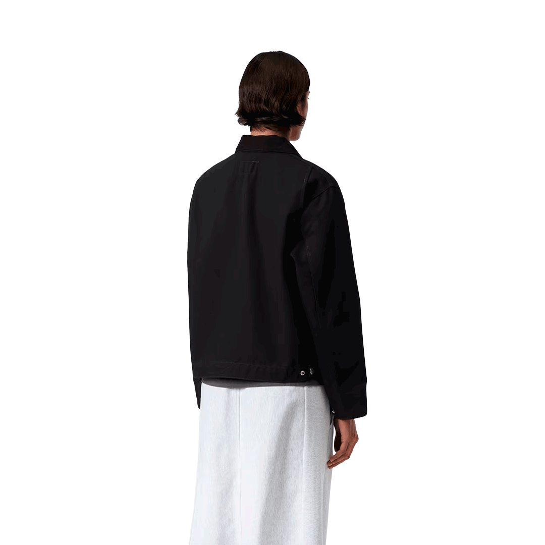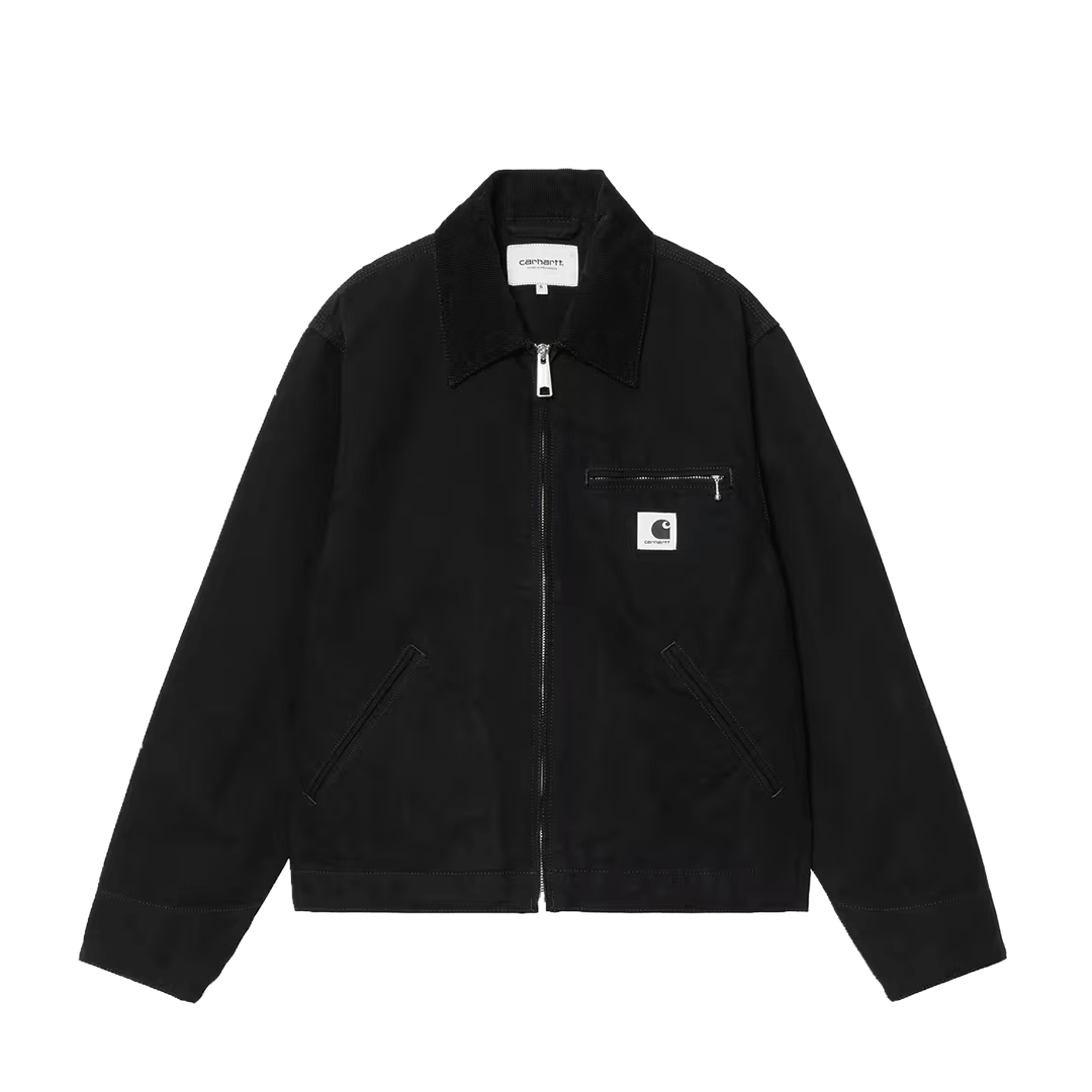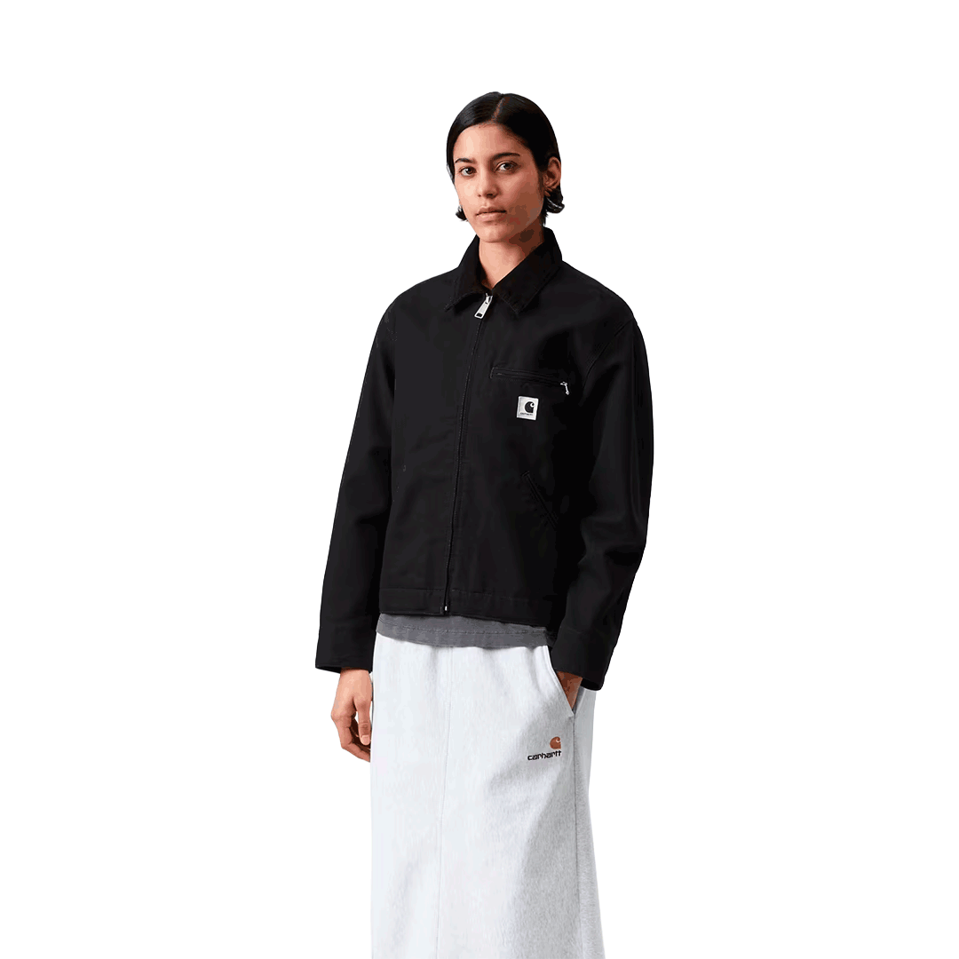 La W' OG Detroit Jacket – Black / Black, Rinsed revisite une icône Carhartt WIP dans une version loose féminine et sans doublure. Confectionnée en toile Dearborn épaisse, elle associe robustesse et caractère utilitaire, tandis que le col en velours côtelé, les détails triple point et la fermeture zippée à double sens ajoutent du relief. Ses poches pratiques, ses ajustements discrets à la taille et aux poignets, ainsi que le Square Label emblématique, en font une pièce forte et polyvalente.