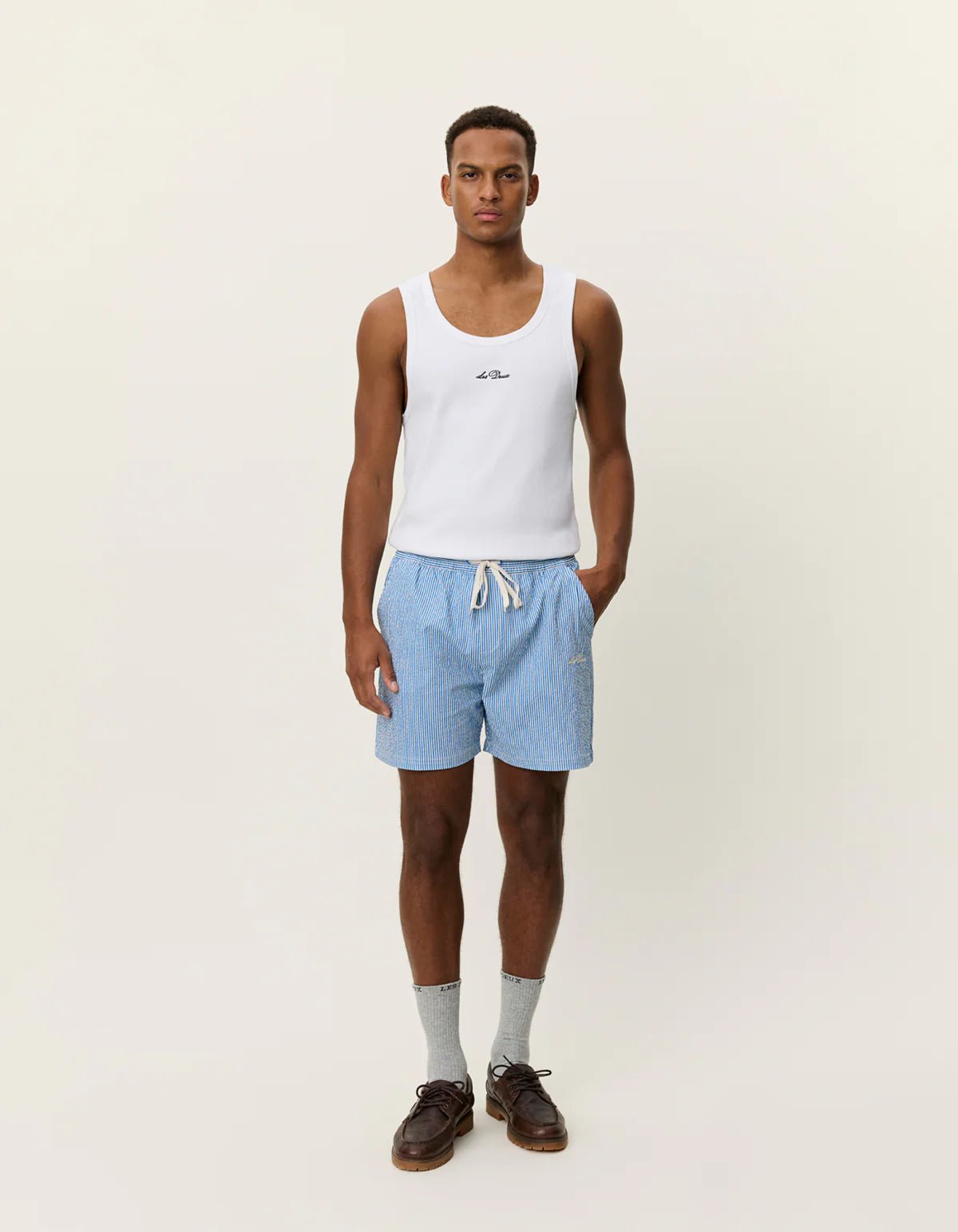 Le Stan Stripe Seersucker Swim Shorts séduit par son design raffiné et son tissu gaufré texturé à rayures, idéal pour un style estival premium. Sa coupe regular décontractée assure un confort optimal, tandis que la taille élastiquée avec cordon de serrage garantit un ajustement précis. La broderie discrète sur le devant apporte une touche d’élégance subtile. Un short de bain moderne, pensé pour allier allure et aisance.