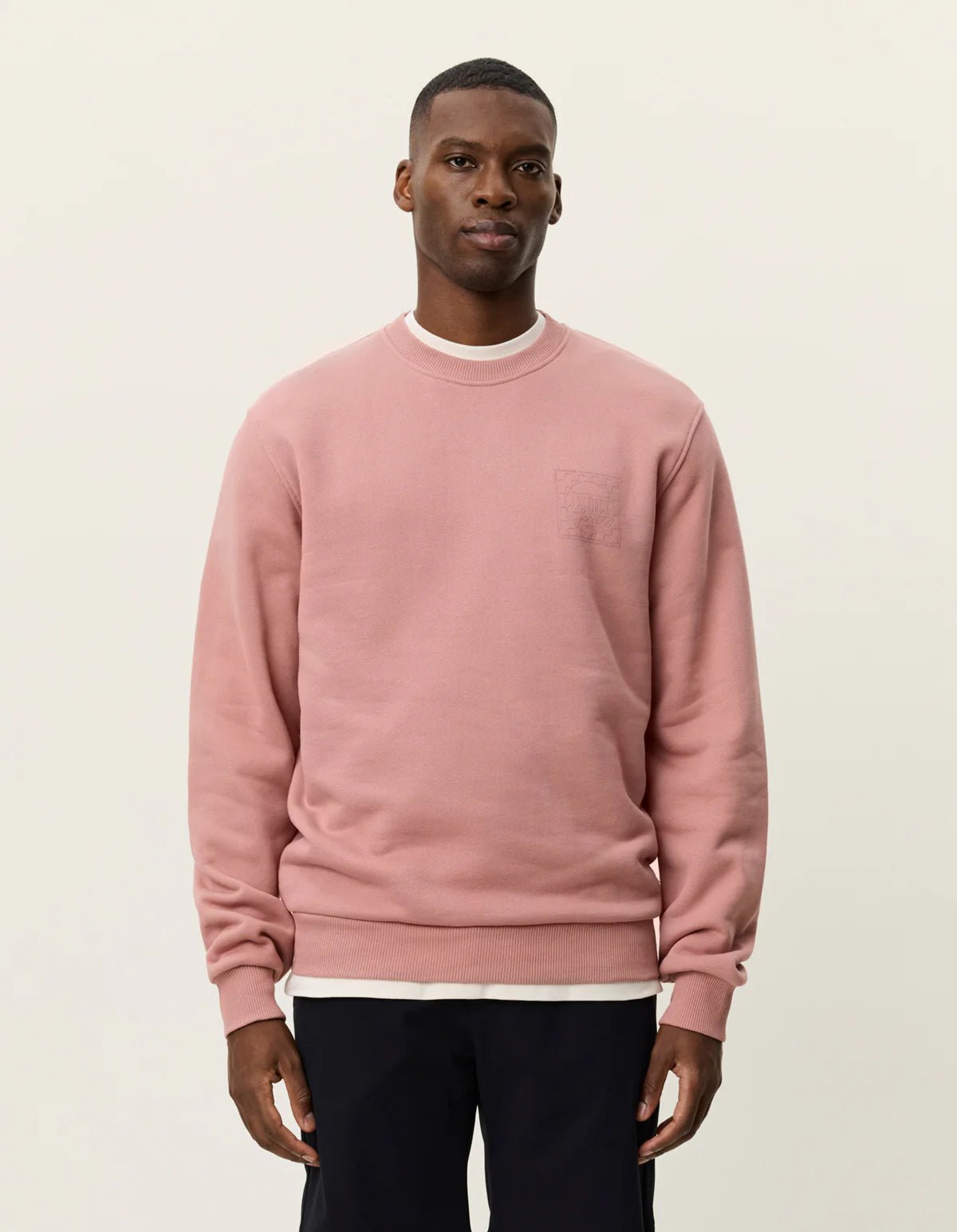 Le Ben Goods Sweatshirt – Ash Rose Pink associe design graphique et matière responsable dans une silhouette structurée et confortable. Confectionné en coton biologique épais, il offre un toucher doux et un tombé net, idéal pour un look casual maîtrisé. Son imprimé en relief ton sur ton à l’avant et son visuel audacieux au dos apportent une dimension visuelle forte, tout en conservant une esthétique épurée.