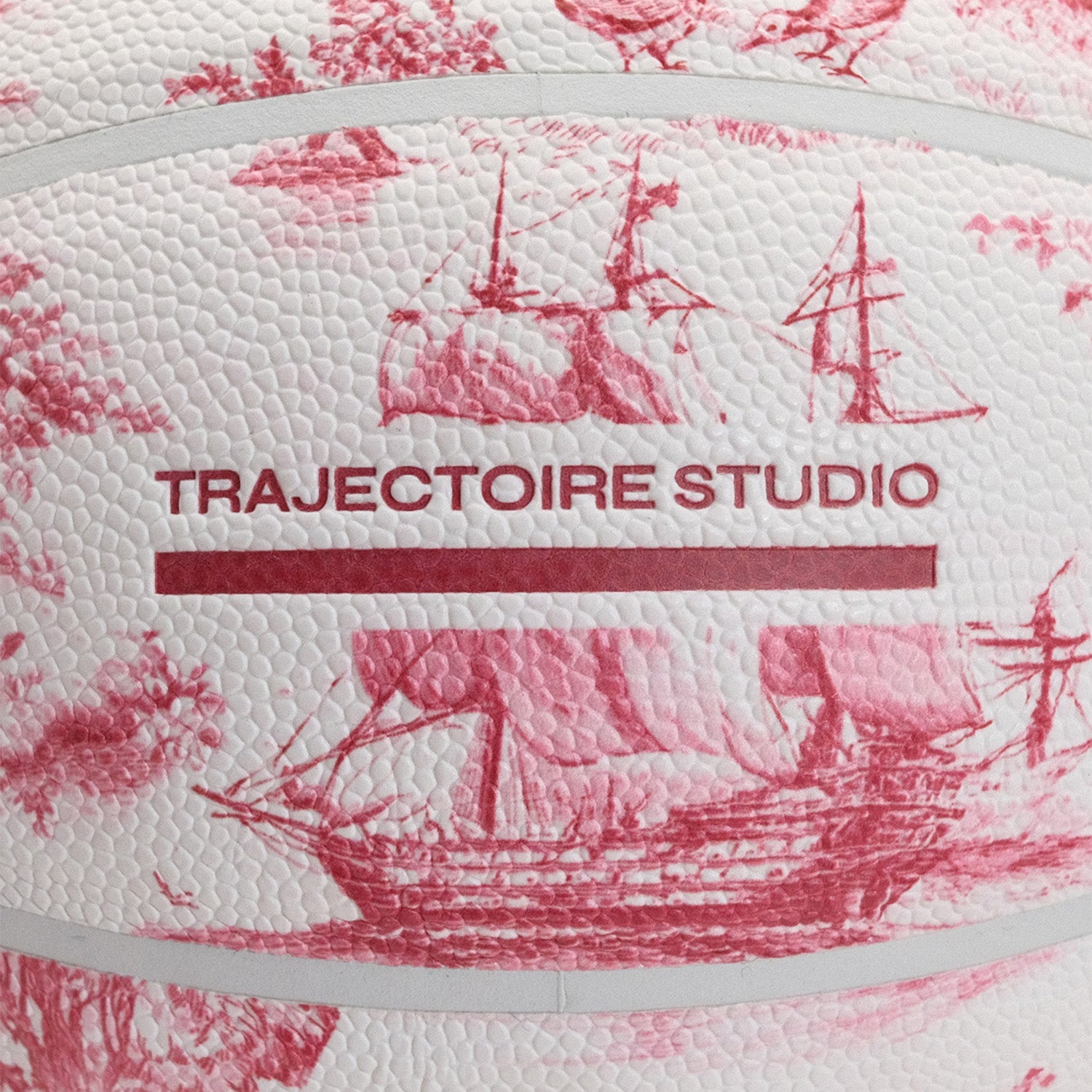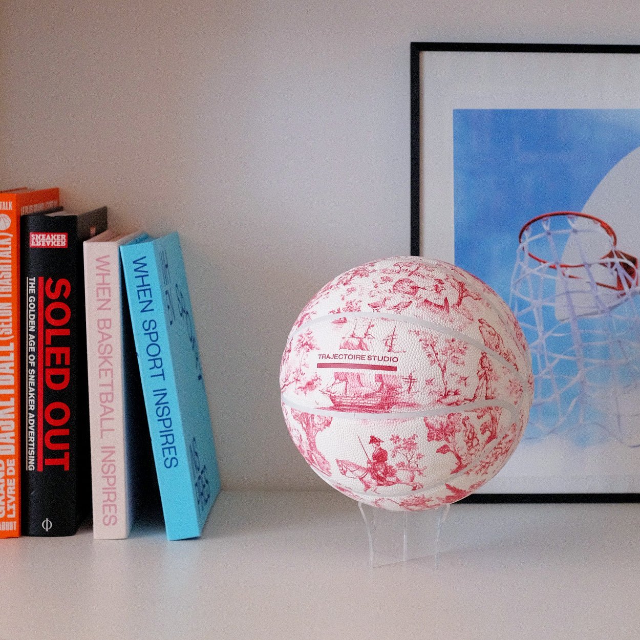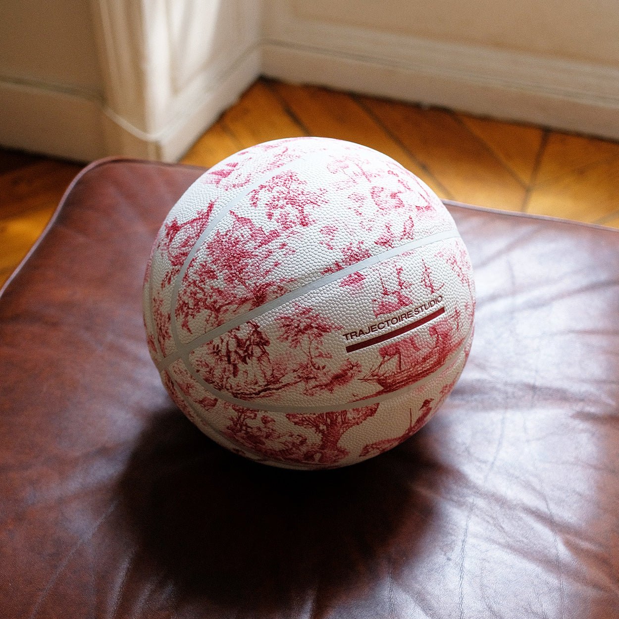 Symbole d’élégance à la française, cette balle de basketball en Toile de Jouy rouge réinvente un motif emblématique dans une version audacieuse et contemporaine. Chaque détail, du logo embossé à l’impression de haute qualité, reflète un souci de finesse et de durabilité. Sa surface en caoutchouc texturé en fait un objet aussi décoratif que marquant. Une pièce d’exception, idéale pour offrir ou sublimer votre intérieur avec caractère.